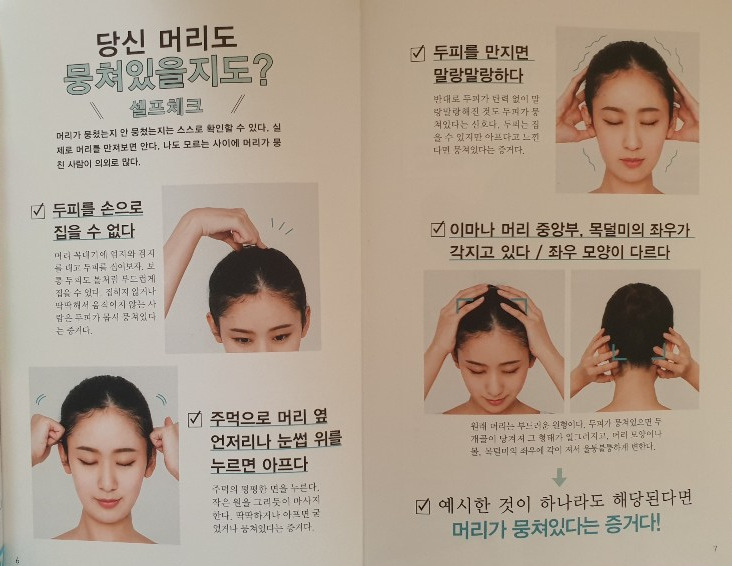 제일 먼저 셀프체크가 나옵니다. 아래 중 하나라도 해당되면 머리가 뭉쳐있다는 증거예요!