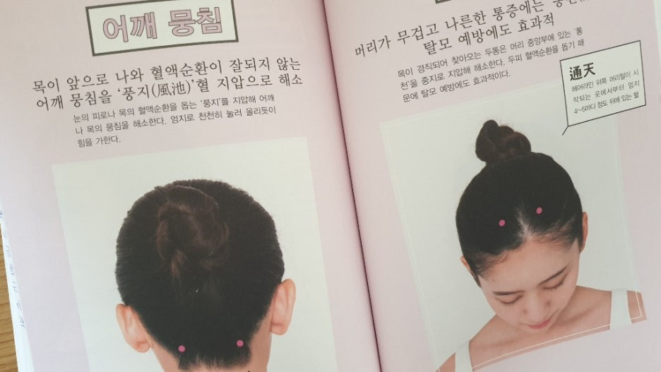또한 등과 목의 뭉침을 푸는 방법뿐만 아니라 혈액 순환을 도와주는 머리의 혈을 누르는 것에 대한 것도 소개해 줍니다. 머리에는 자율신경을 관장하는 혈이 많아 지압을 해주면 몸뿐만 아니라 마음도 건강해진다고 합니다. 한 점을 누르기만 하면 되기 때문에 지하철 안에서도, 카페에서 차 한잔하면서도 할 수 있어요.