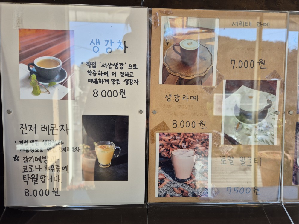 이것은 이전에 먹었던 서리태 라떼와 아포카토입니다. 서리태 라떼는 진짜 두유 맛이 나고 콩 조각이 씹히는 건강한 음료였어요. 아포카토는 커피는 맛있는데 바닐라 아이스크림이 고급 아이스크림이 아닌 것 같아 조금 아쉬웠습니다.