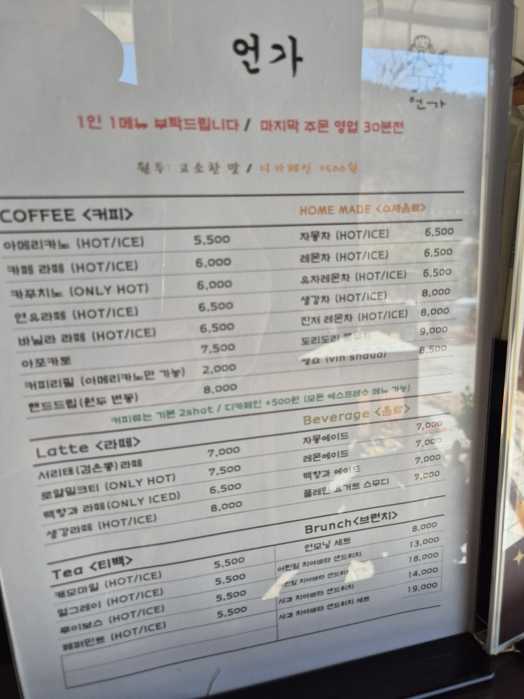 - 아메리카노 5,500원 / 카페라떼 6,000원