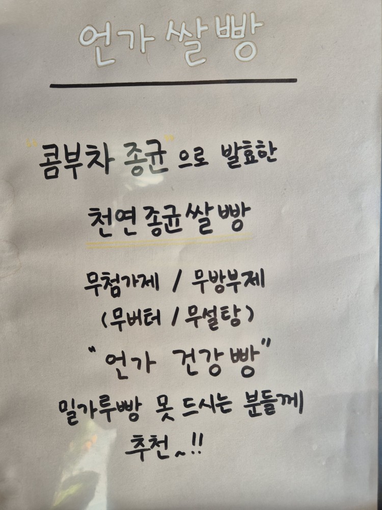 카페 언가의 특징은 속이 편한 천연종균쌀빵이 있다는 것입니다. 그리고 유기농 밀가루를 사용한다고 합니다. 다른 카페처럼 화려하고 달콤한 베이커리 종류가 있지는 않지만 은근히 맛있는 베이커리가 매력인 곳입니다. 저는 커런츠쌀빵을 좋아합니다.