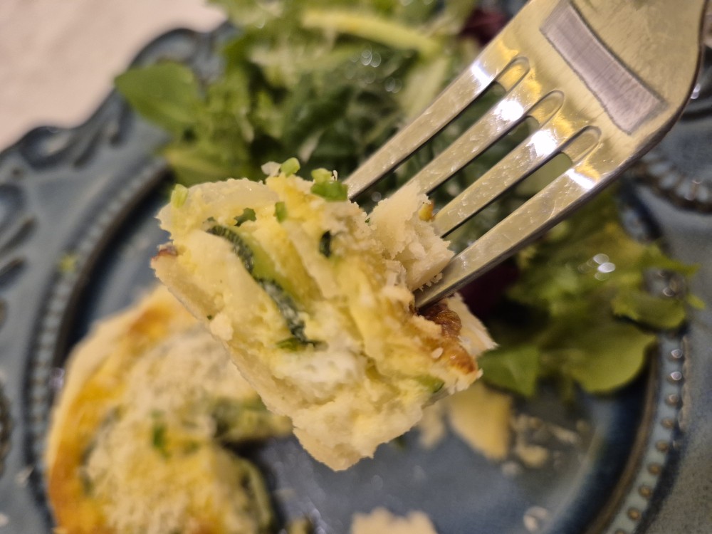전채요리로는 쥬키니 호박타르트와 샐러드가 나왔습니다. 타르트라고 하면 보통 달콤한 디저트를 생각하는데 프랑스 사람들은 식사로도 타르트를 먹는다고 하네요. 안에 쥬키니 호박과 야채가 들어 있는 타르트인데 식사용 타르트는 처음 먹어보았습니다. 샐러드와 매우 잘 어울렸어요.