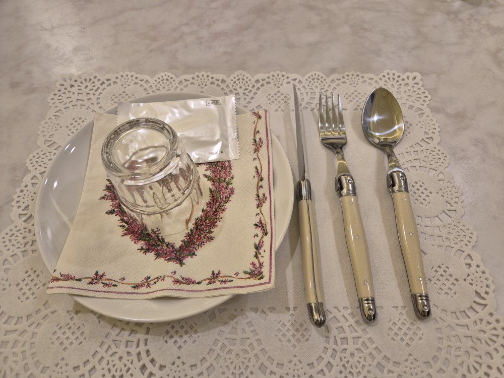 단품은 예약 없이 방문해서 먹을 수 있으나 가정식 코스는 최소 하루 전에 예약을 해야 합니다. 단품(가지라자냐, 아쉬파르망티에, 오늘의 수프)은 몇 가지 먹어보았습니다. 단품이 만족스러웠기 때문에 이번에는 3만 원 프랑스 가정식 코스를 먹어보았습니다. 예약을 했기 때문에 이미 테이블 세팅이 되어 있었고 메뉴도 함께 안내가 되어 있었습니다.