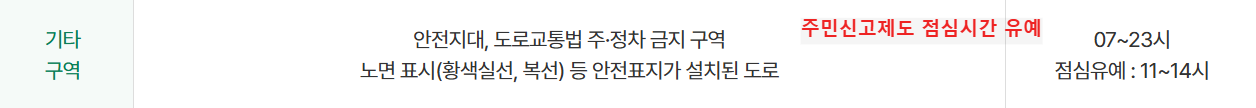- 점심시간(11:00~14:00) 단속 유예, 단 6대 중점 구역은 단속 유예 적용 제외