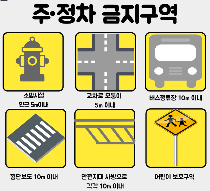 - 단속 구역 : 6대 불법 주정차 금지구역