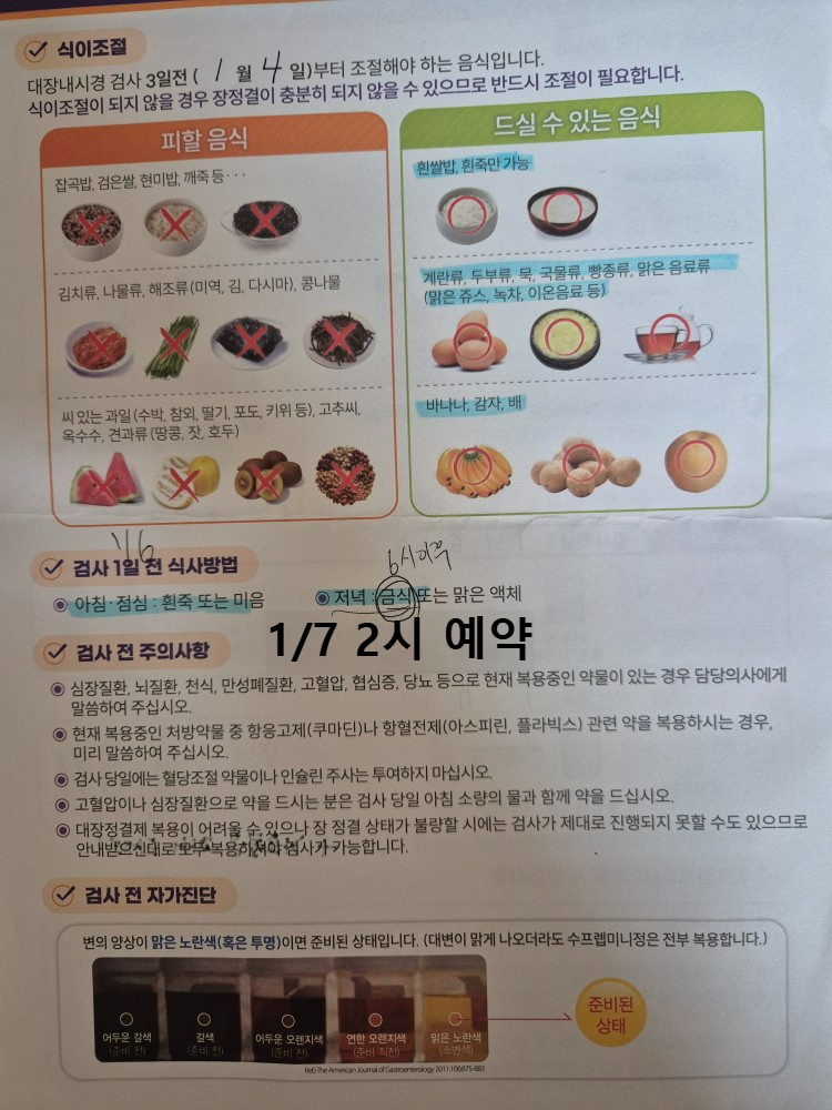 수면대장내시경 후기, 대장내시경 준비, 음식