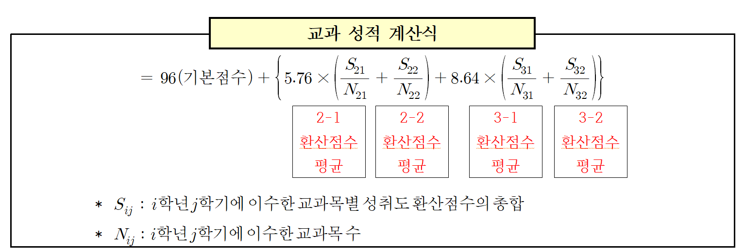 - 학기별 환산점수의 평균으로 교과 성적 산출