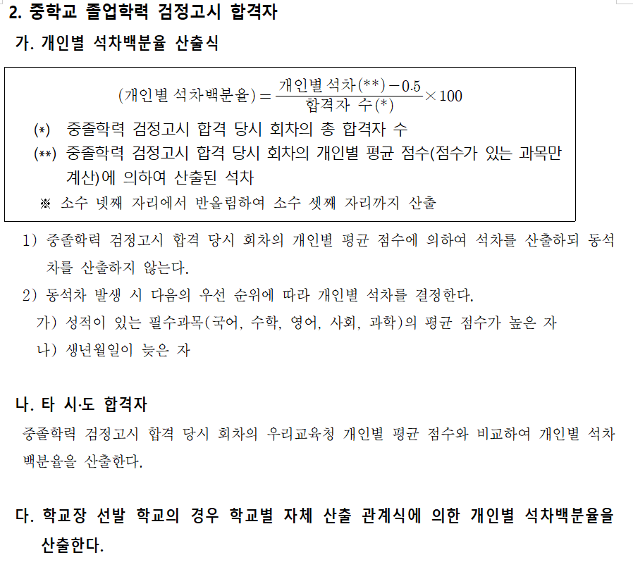 - 내신 총점이 동점인 경우는 아래 순위로 석차 결정